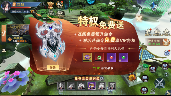 在线即可免费领取升仙令,激活后可免费享受vip特权,且能每日领取升仙令福利。